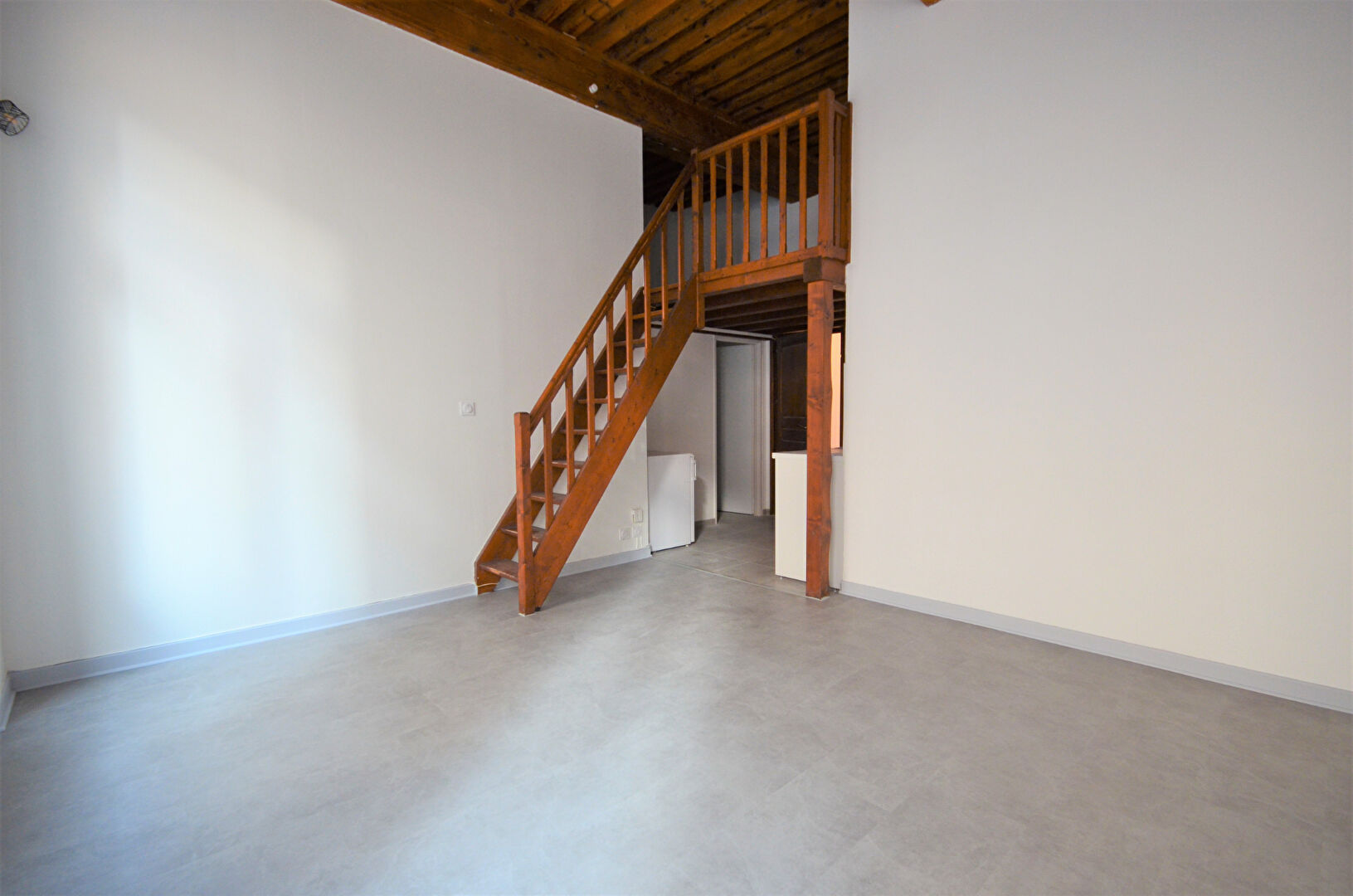 Il comprend un séjour de 17 m², une cuisine de 5 m², une mezzanine de 9 m² et une salle d'eau avec WC.