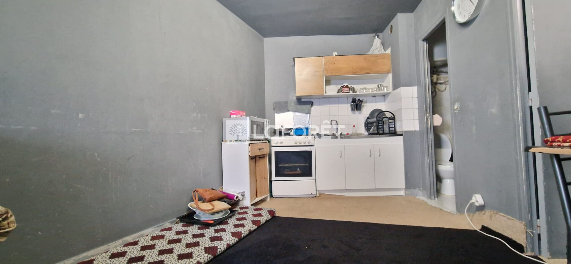 Un salon comprenant un espace cuisine, une chambre ainsi qu'une salle de bains indépendante.
