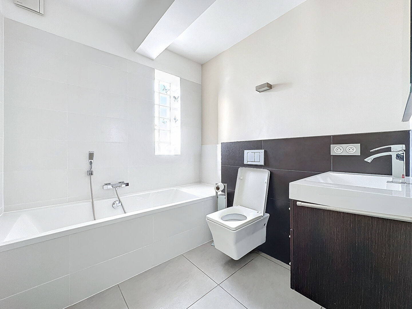 À l'étage, un bel espace, avec accès direct à une magnifique terrasse type roof top, vous attend, pouvant servir de bureau ou de chambre. Vous y trouverez également une suite parentale avec accès à cette même terrasse, une salle de bains avec W.C., ainsi qu'un dressing aménagé.