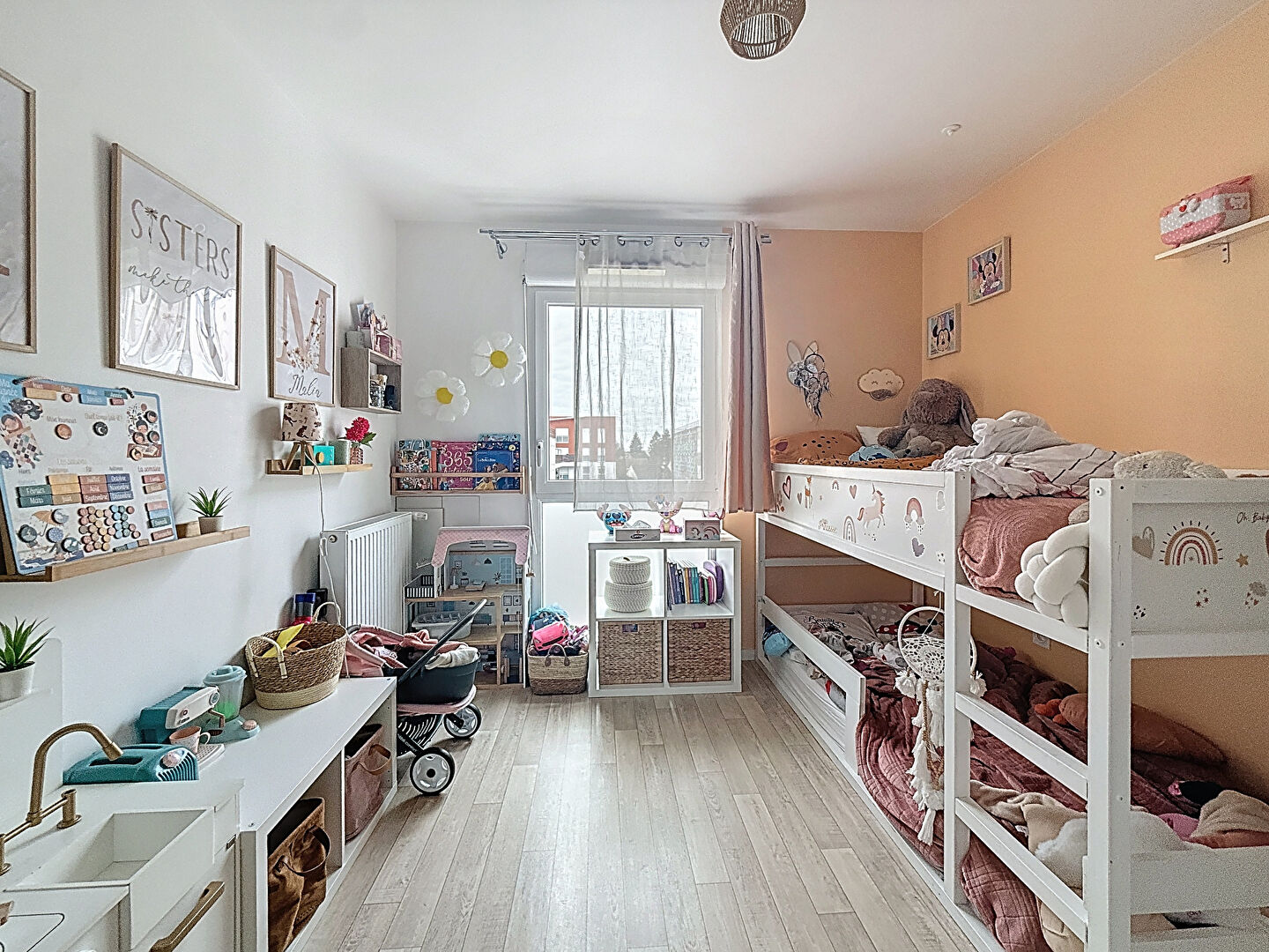L'espace nuit, bien séparé, comprend deux chambres lumineuses avec placards intégrés et une salle d'eau moderne.