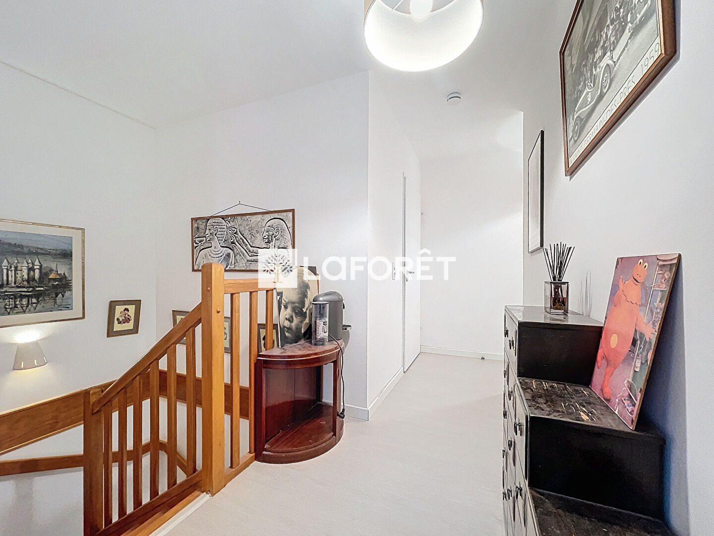 À l'étage vous trouverez une cuisine aménagé et ouverte sur un salon donnant un accès direct au balcon. Une salle de bain, WC séparés. Une chambre avec dressing.