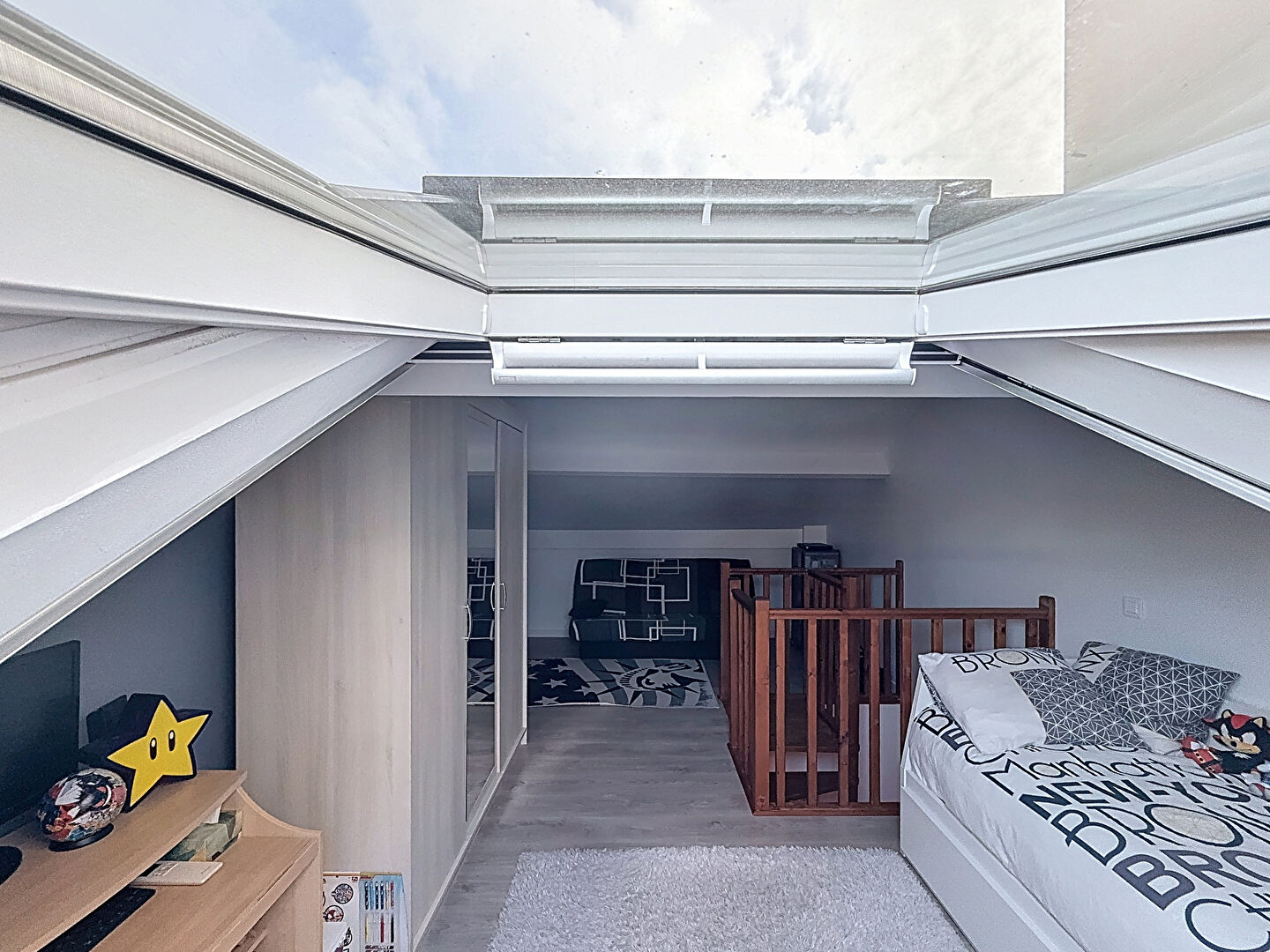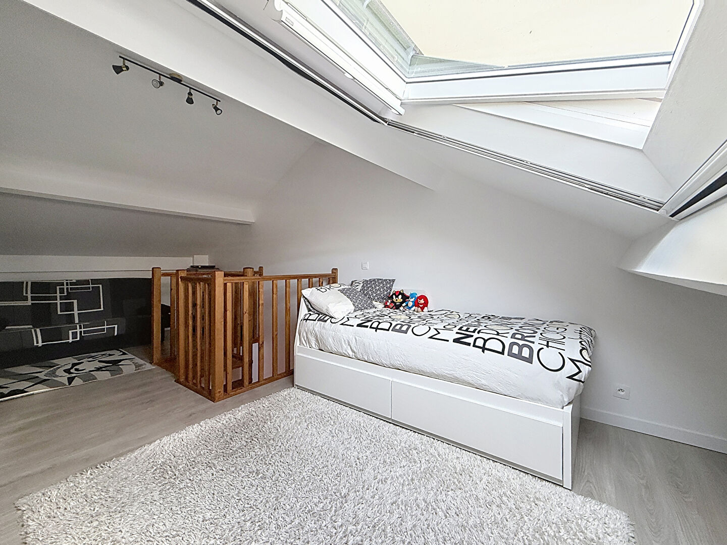 À l'étage, vous découvrirez une spacieuse chambre et des combles aménageables offrant un bel espace de rangement.