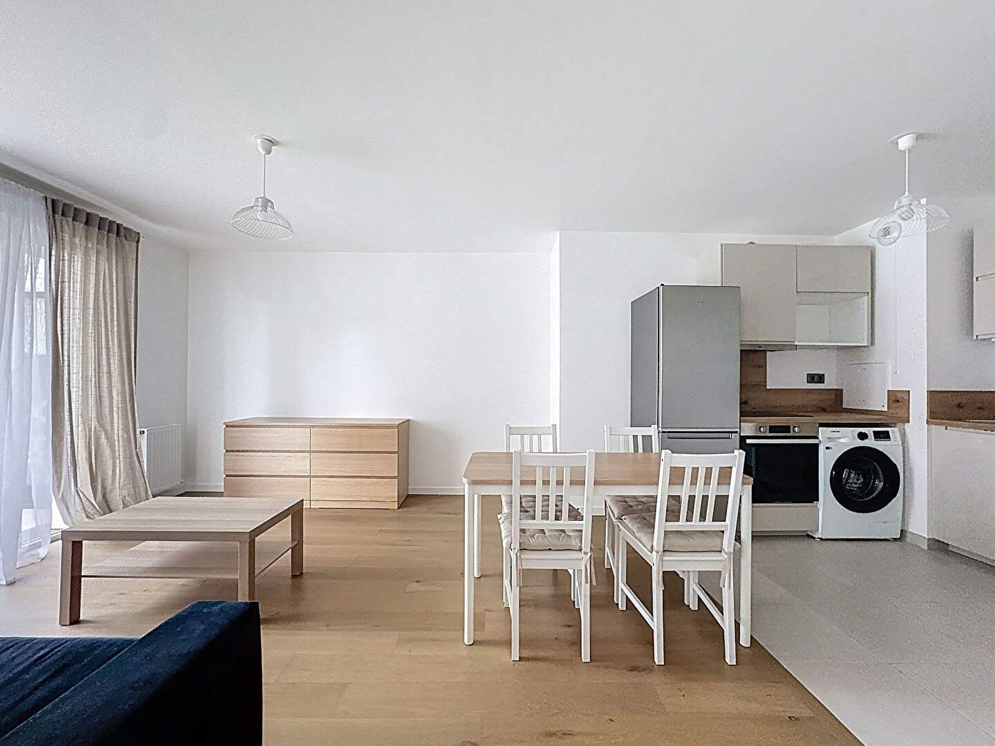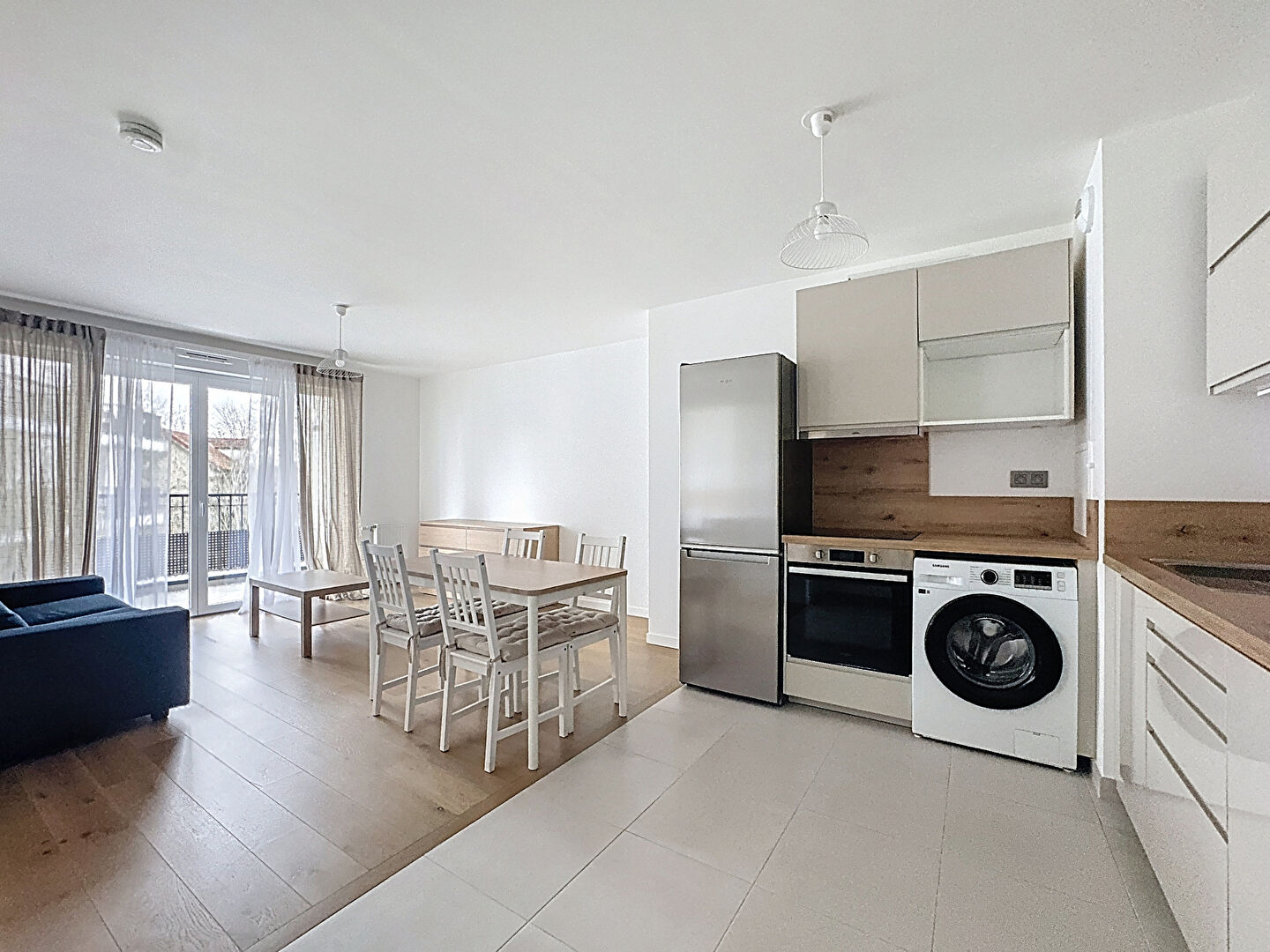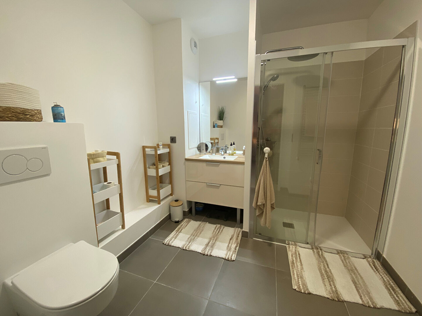 Appartement meublé au 2ème étage avec ascenseur, comprenant : une entrée avec placard, un séjour avec une cuisine aménagée et équipée, une chambre avec placards, une salle d'eau avec wc. Un balcon. Une place de stationnement en sous-sol.