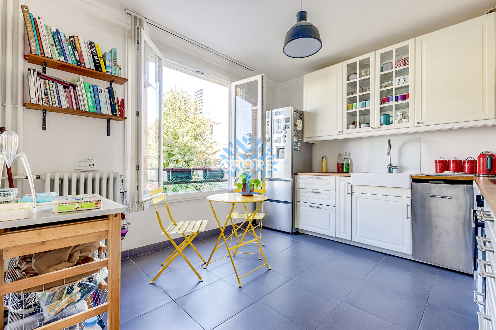Rénové en 2016, il est composé de : séjour lumineux exposition Ouest avec verrière sur cuisine dinatoire. Côté nuit, deux chambres spacieuses espacées l'une de l'autre, et calmes, une salle d'eau avec douche à l'italienne, et WC suspendus séparés
