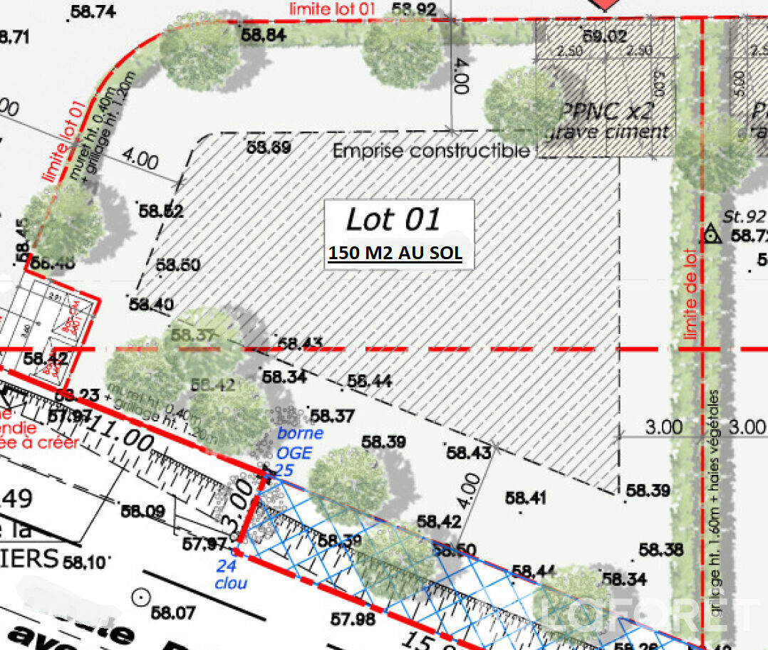 Libre choix constructeur pour réaliser des constructions contemporaines avec une emprise au sol de 150 m2 possible de plain pied ou à étage. Secteur arboré et résidentiel.