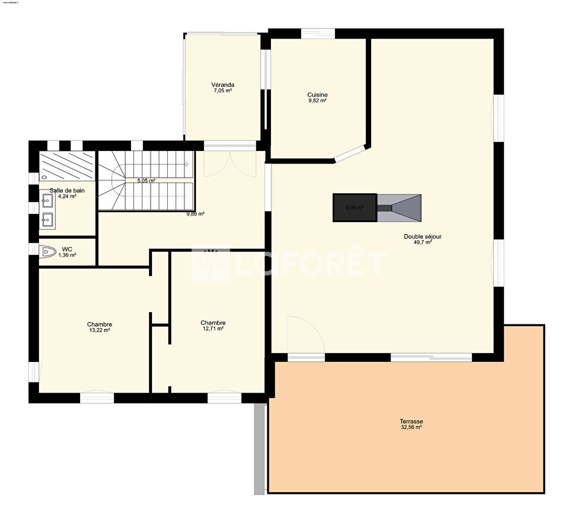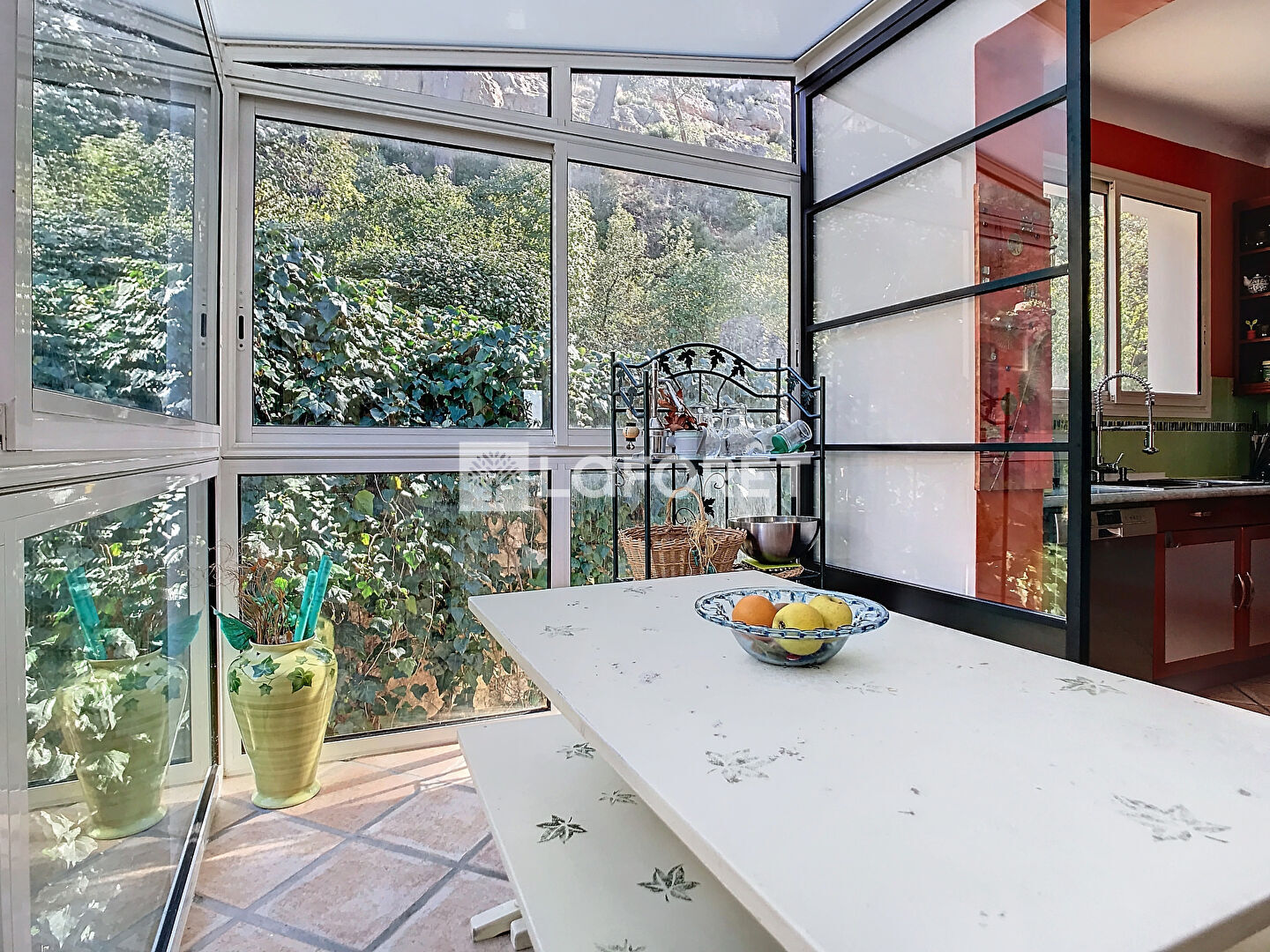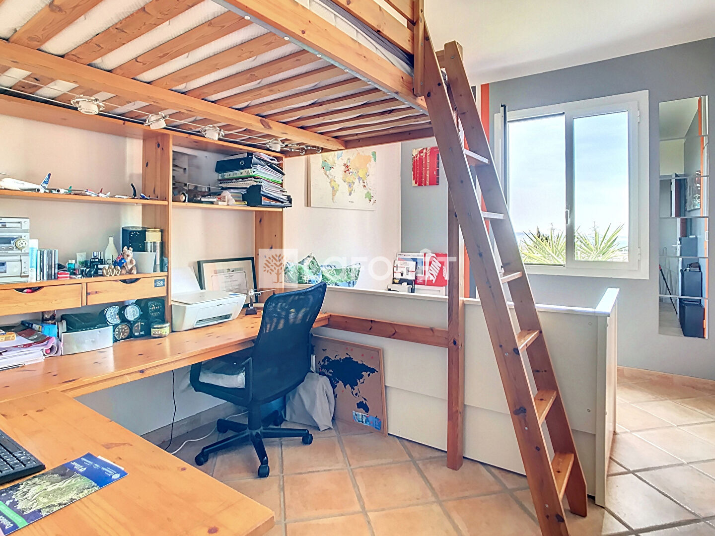 - A l'étage: Un grand séjour de 50m2 donnant sur une belle terrasse avec vue panoramique, cuisine véranda, 2 chambres de plus de 12m2, salle de bains et WC.