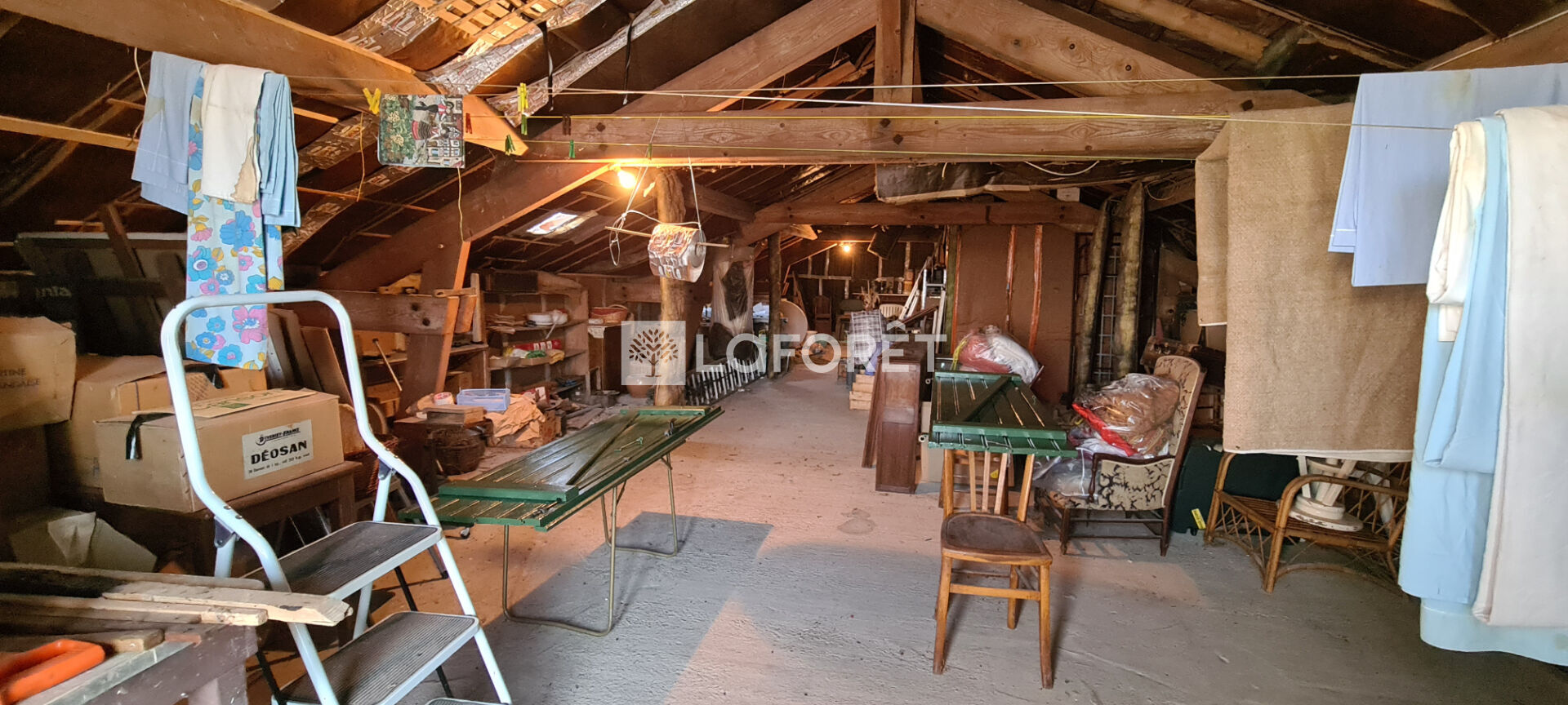 Un grenier d'environ 100 m², entièrement aménageable, offre un potentiel d'agrandissement. Ce bien est complété par un garage et un atelier.