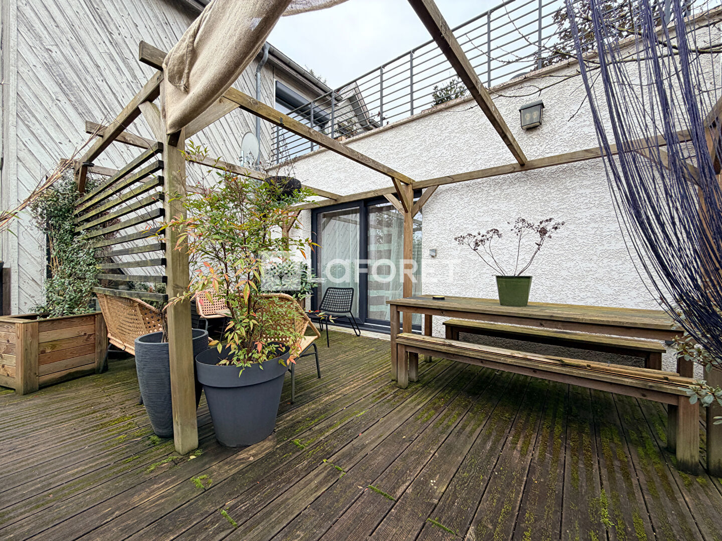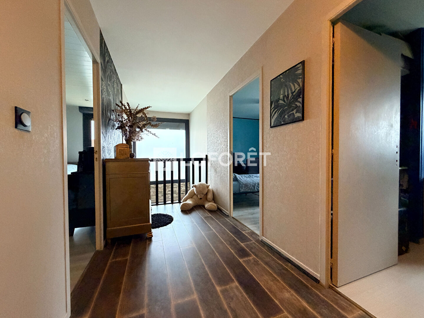 À l'étage, un palier dessert trois chambres spacieuses, dont une avec accès à un toit terrasse, une salle de bains et un WC indépendant.