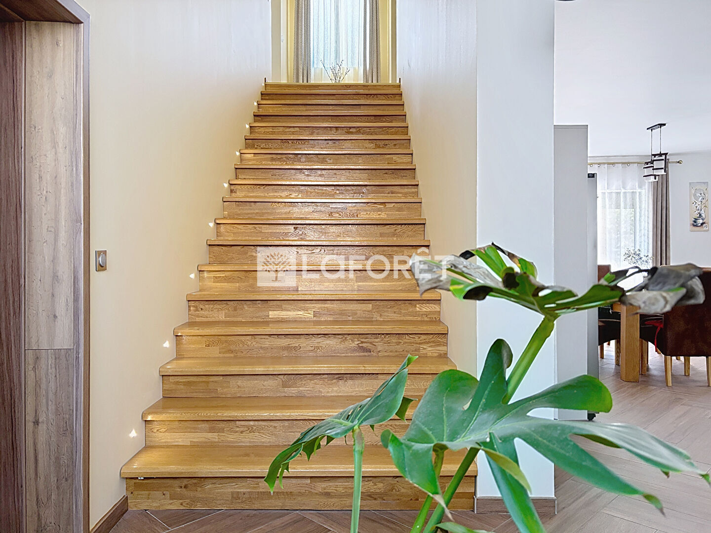 À l'extérieur vous bénéficierez d'un jardin arboré de 1000 m², une terrasse de 70 m² ainsi qu'une dépendance avec cuisine d'été. Le garage dispose d'une porte motorisée.