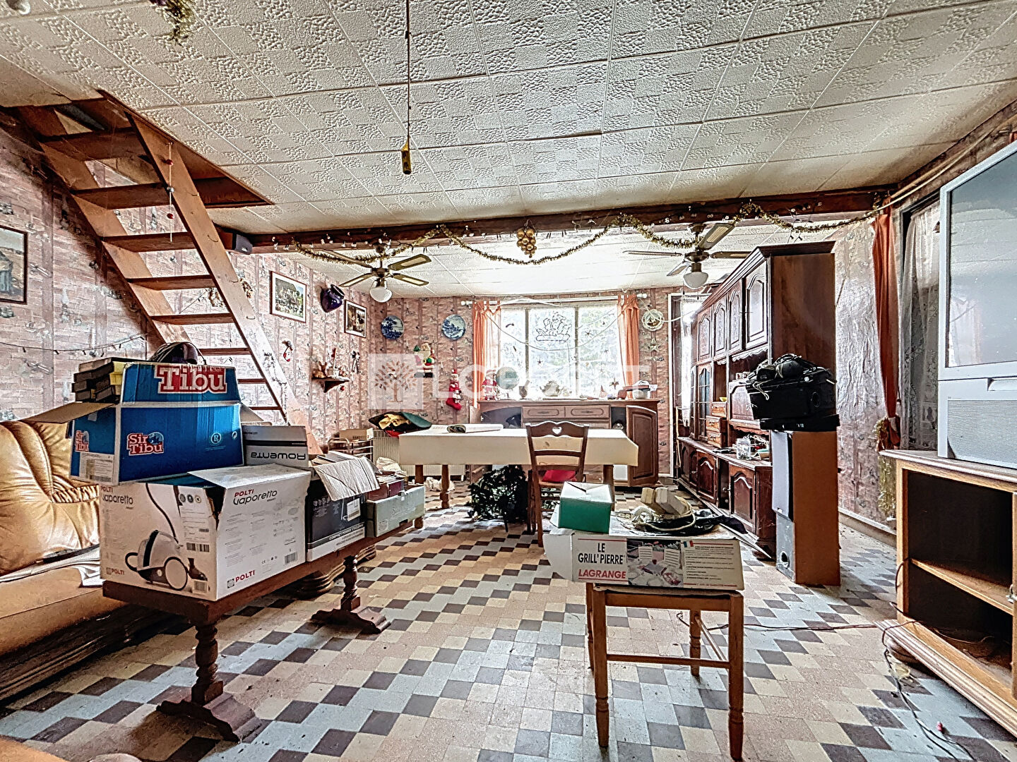 Elle se compose d'une pièce de vie, d'une cuisine, de deux chambres, d'une salle de douche et d'un WC séparé. Un garage attenant et une cave complètent ce bien.