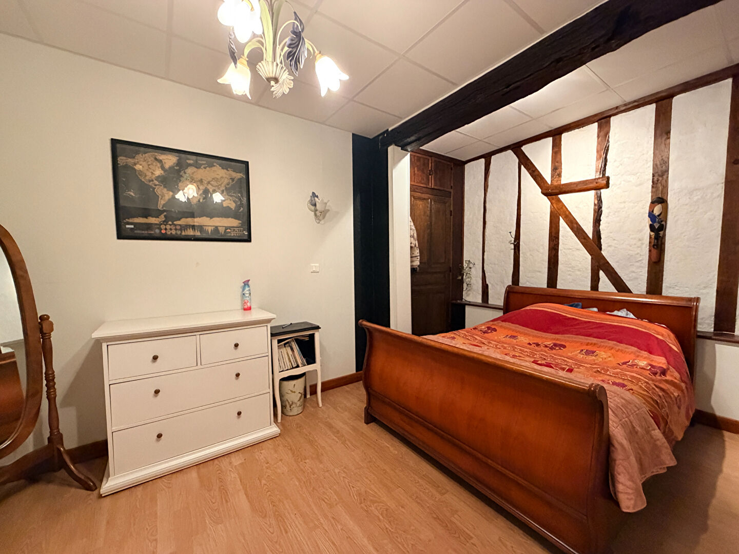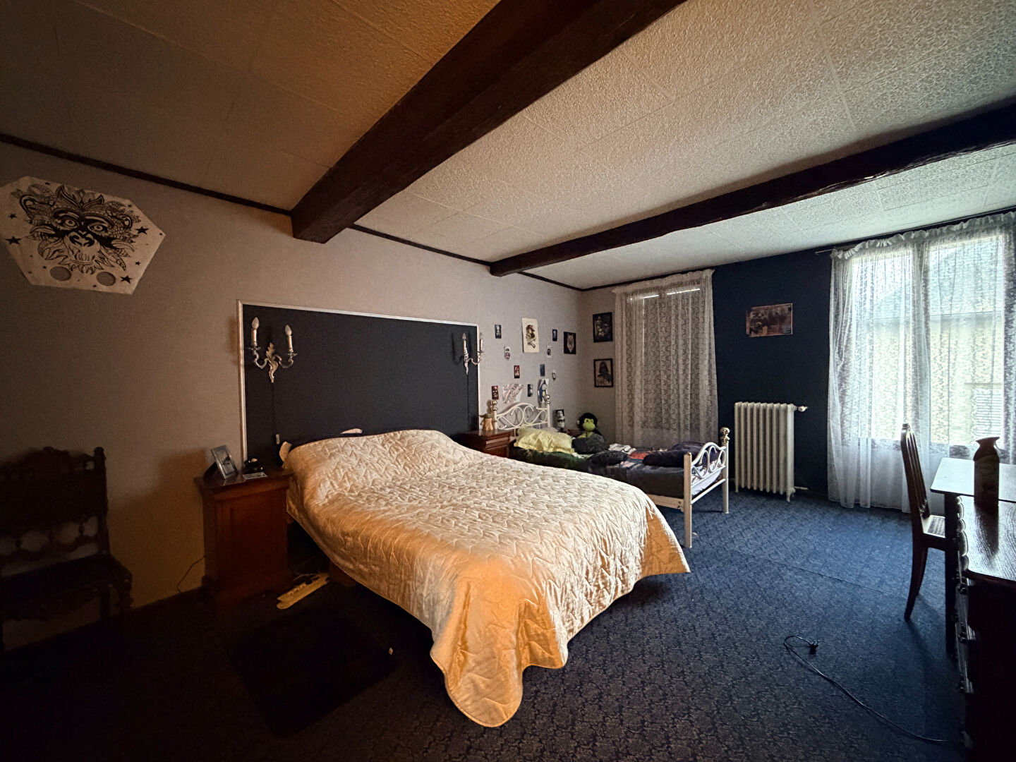 À l'étage, accessible également par le porche, vous trouverez deux chambres supplémentaires, laissant place à différents projets d'aménagement selon vos besoins.
