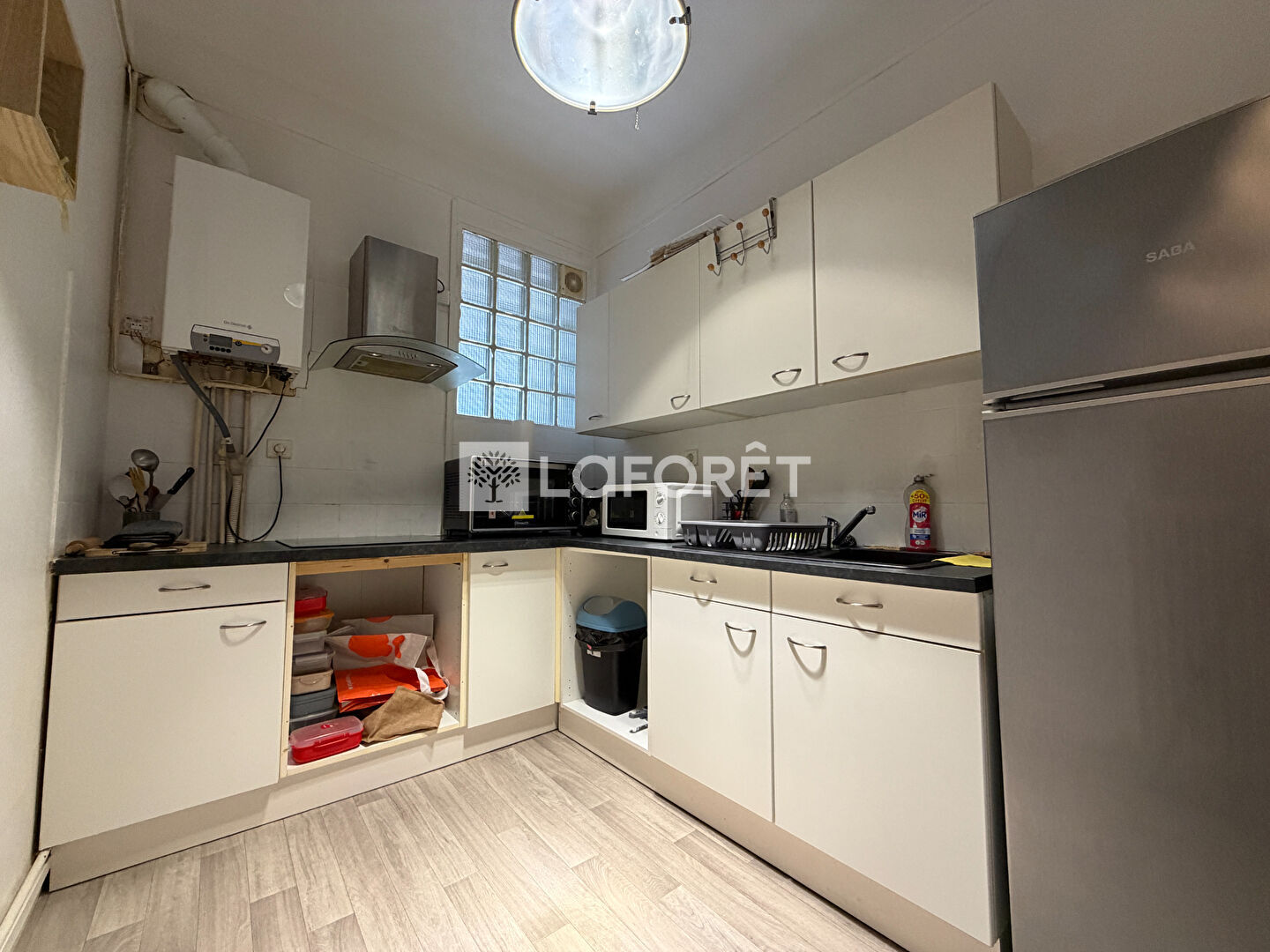 Il se compose d'une entrée avec couloir et placard, desservant un double séjour lumineux, une cuisine aménagée et équipée, une chambre, ainsi qu'une salle d'eau avec WC.