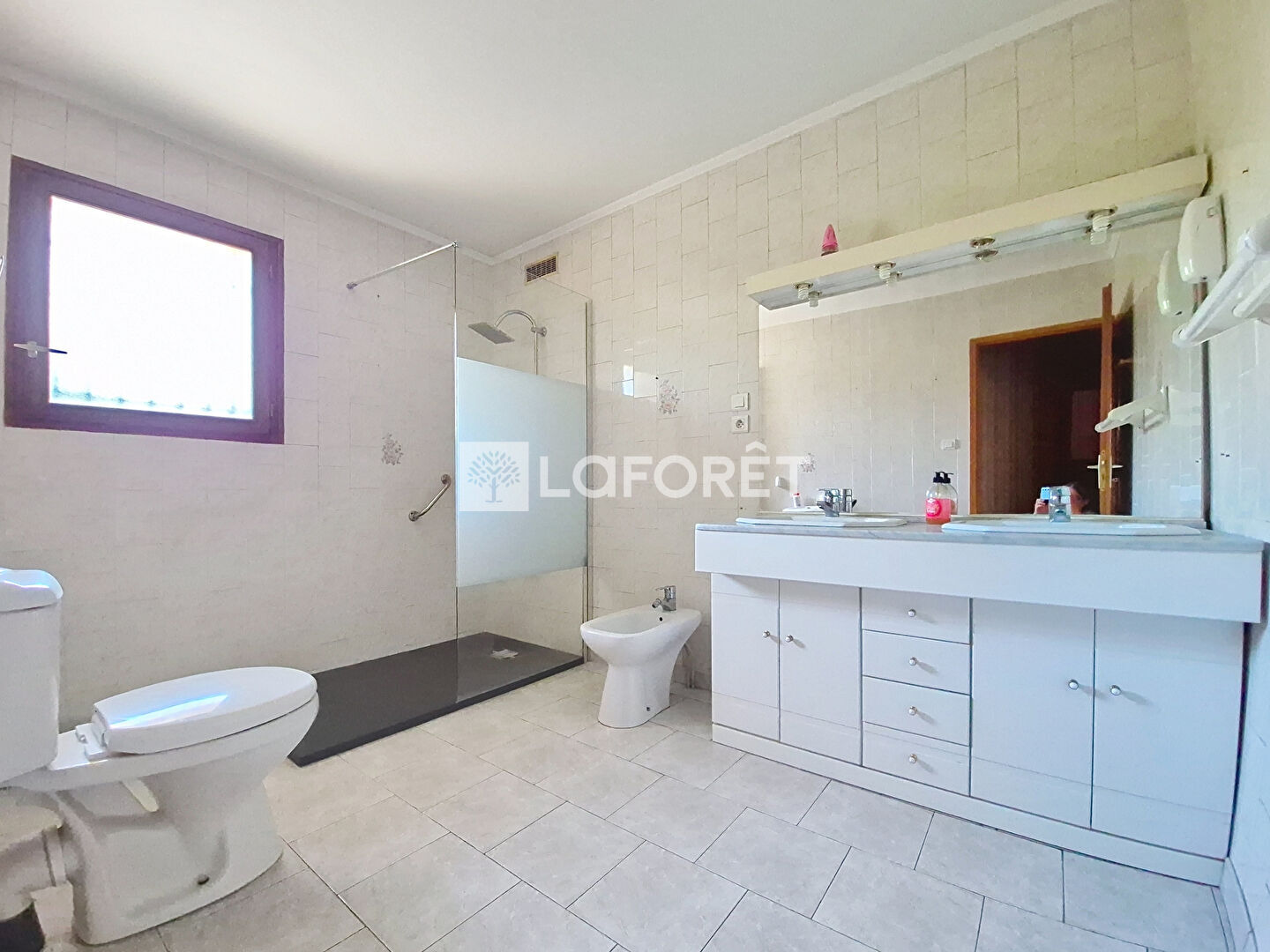 Elle se compose d'un vaste séjour lumineux, d'une cuisine indépendante entièrement équipée avec accès direct au garage double. Avec ses 5 grandes chambres, cette maison est parfaite pour accueillir une grande famille. Vous y trouverez également 2 salles de bains avec WC, ainsi qu'un toilette au rez-de-chaussée faisant office de buanderie.