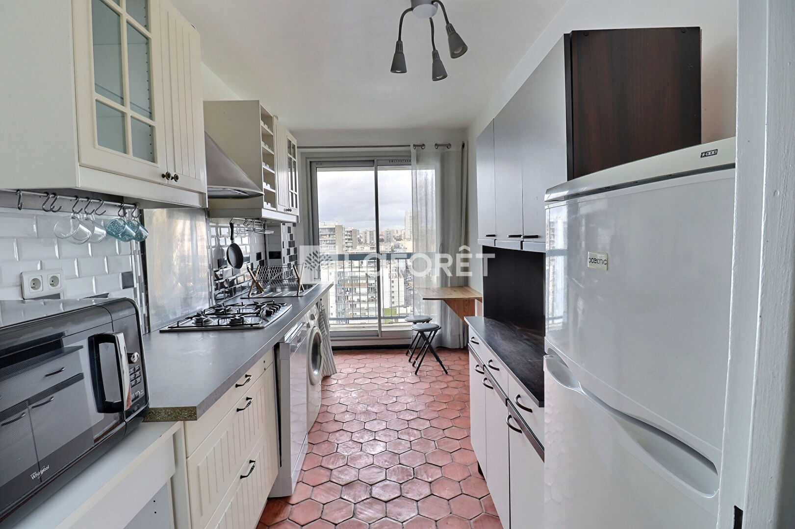 Cet appartement offre une vue imprenable sur le sud-est parisien. Il se compose d'une entrée en étoile avec espace bureau qui dessert l'ensemble des pièces, dont une cuisine dînatoire avec accès au balcon, séjour, chambre avec dressing, salle d'eau avec douche à l'italienne et un w.c indépendant.