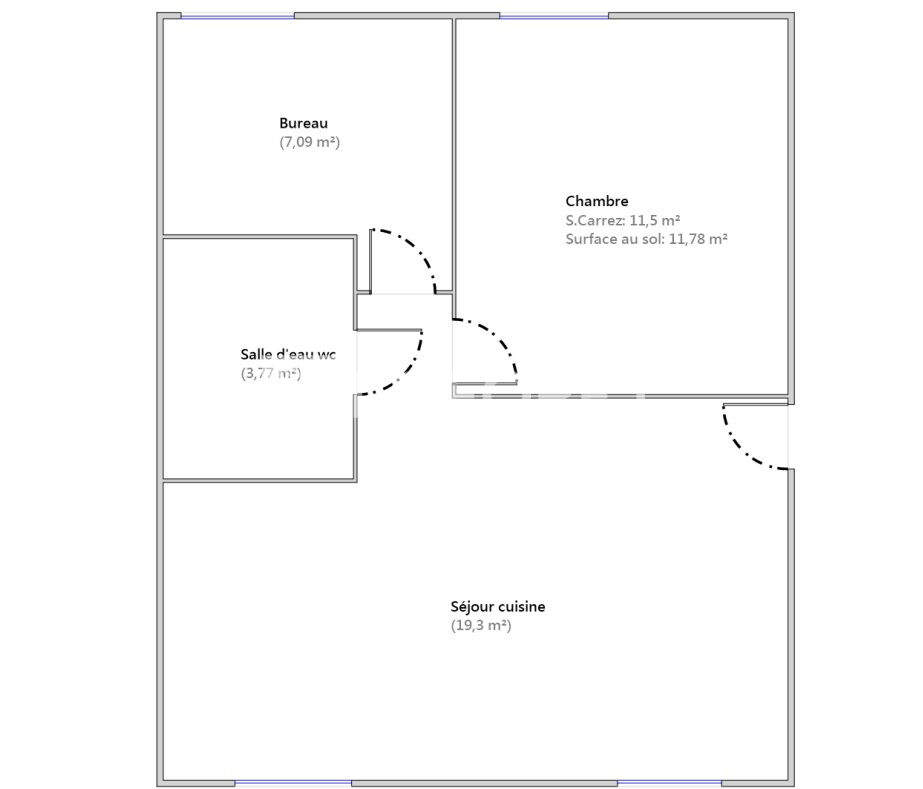 Il est composé d'un séjour avec cuisine ouverte aménagée et équipée, une chambre, un bureau (possible petite chambre) salle d'eau avec WC.