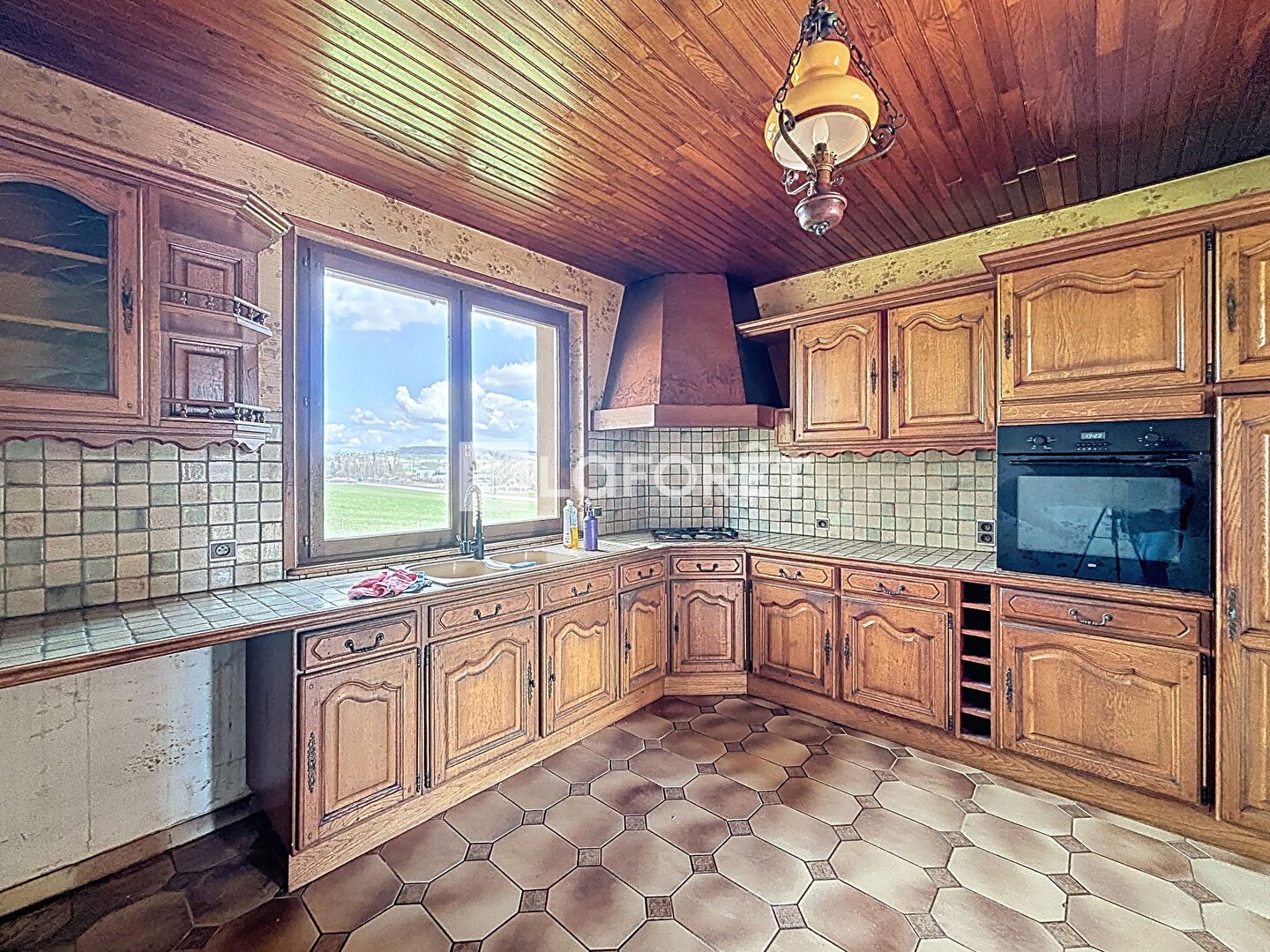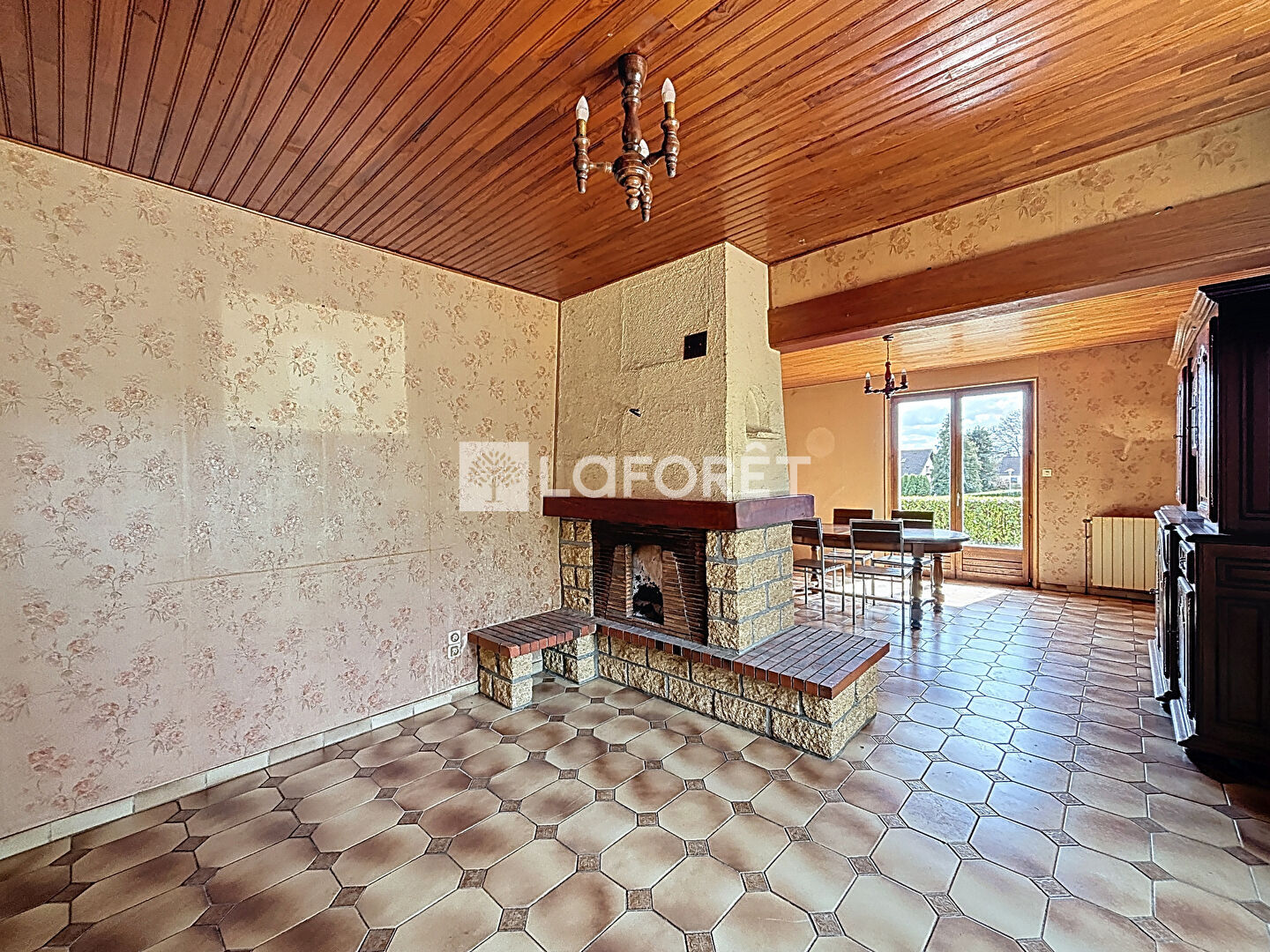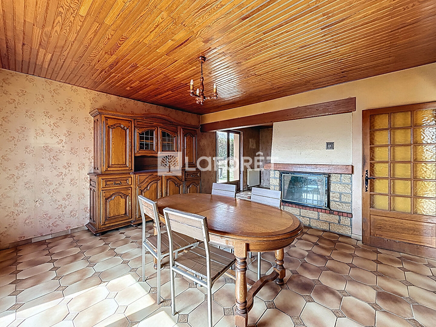 Le système de chauffage de la maison est au fuel avec un complément d'un insert à bois dans la pièce à vivre.