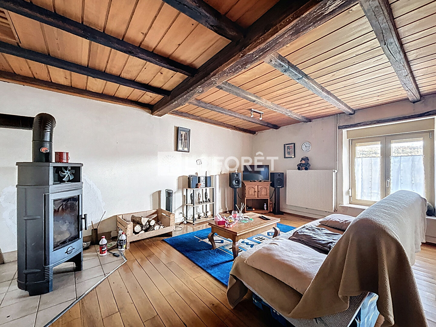 Au rez-de-chaussée, une vaste entrée dessert une cuisine fonctionnelle ainsi qu'une pièce à vivre lumineuse de 40 m², agrémentée d'un poêle à bois qui apporte chaleur et convivialité à l'espace salon.