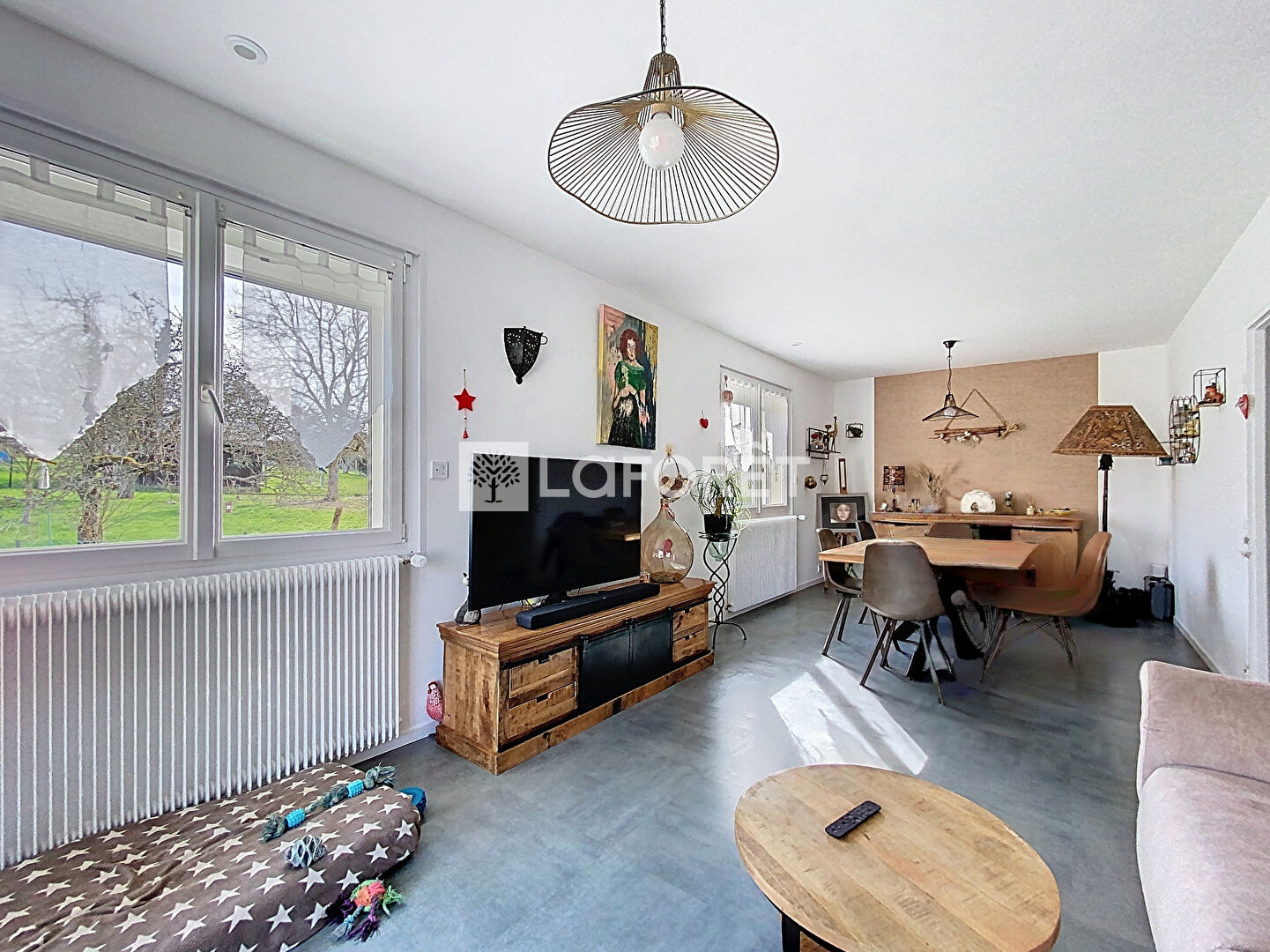 Implantée sur un grand terrain arboré, la propriété permet de profiter pleinement de l'extérieur dans un cadre paisible tout en restant proche des commodités.