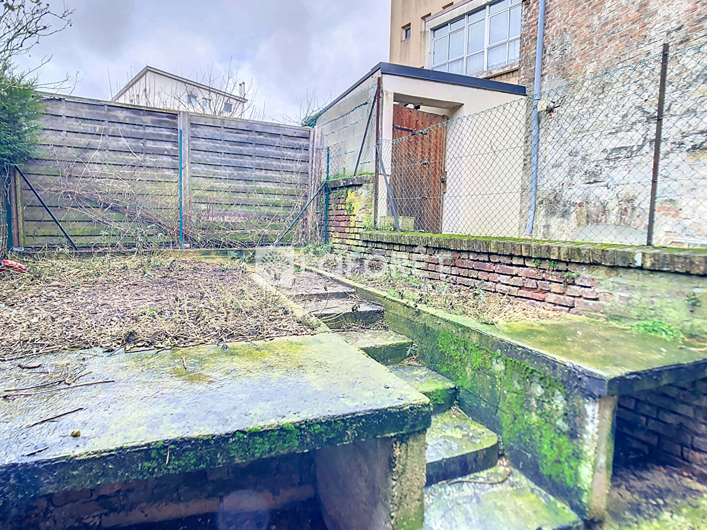 A l'arrière de cette maison, vous trouverez un studio avec sa véranda, sa cuisine, une pièce de vie, une salle de douche avec WC et une mansarde, une cour.