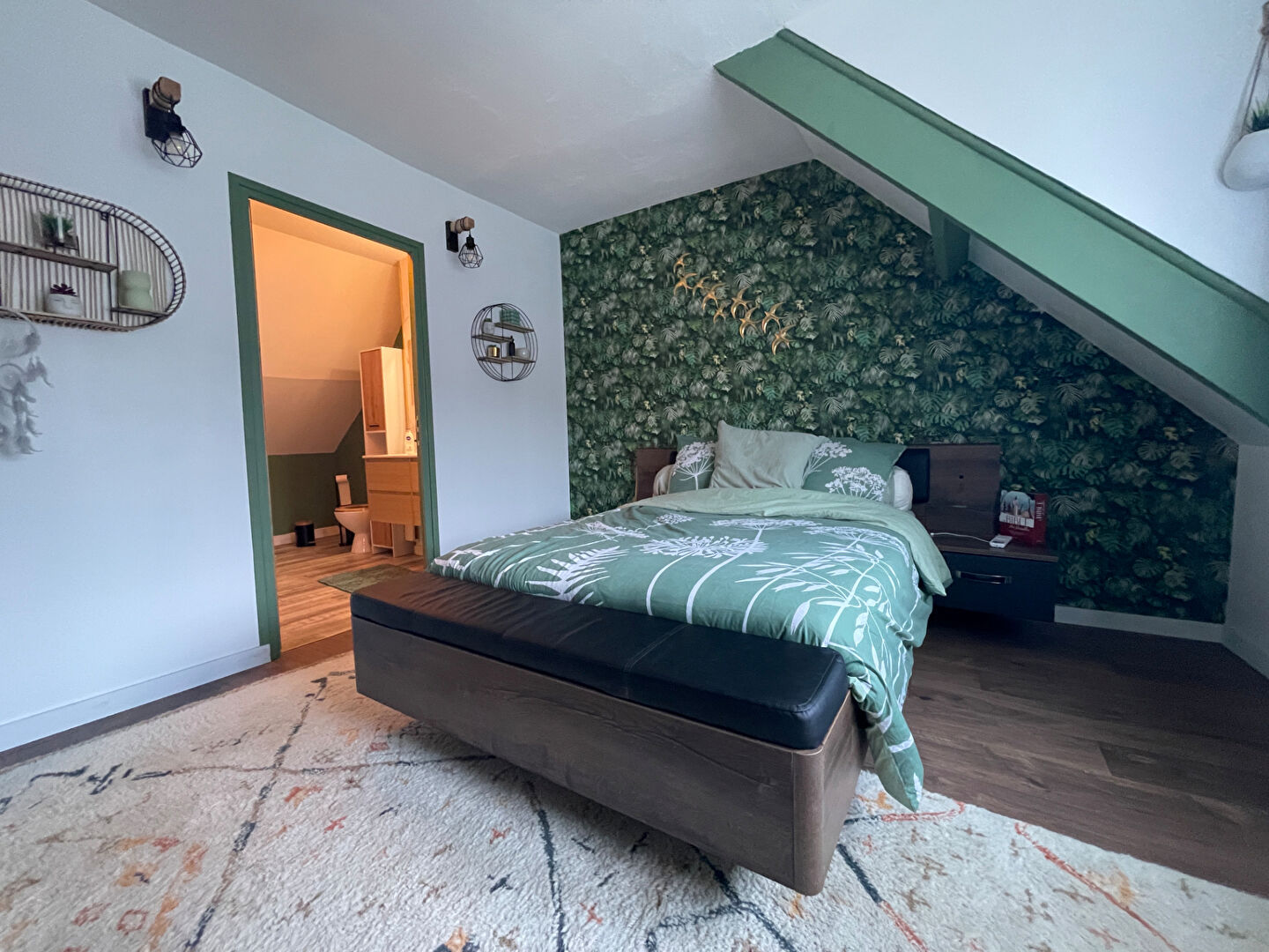 A l'étage: deux chambres dont une suite parentale avec salle d'eau et wc, et une partie mezzanine pouvant servir de bureau et/ou dressing.