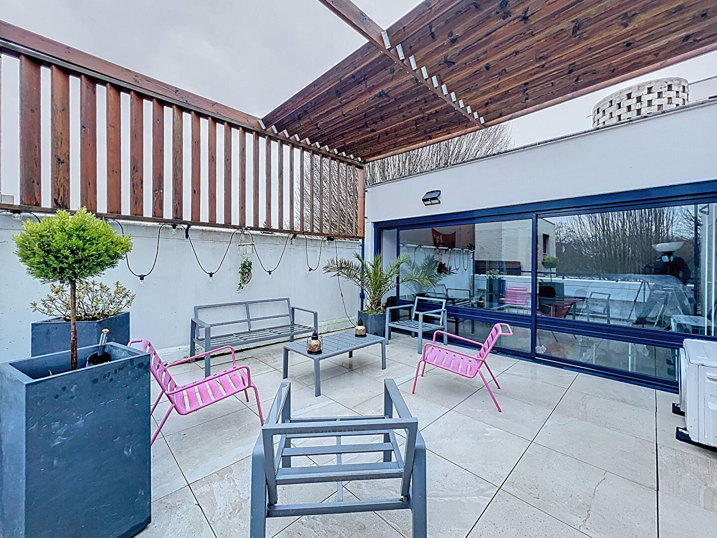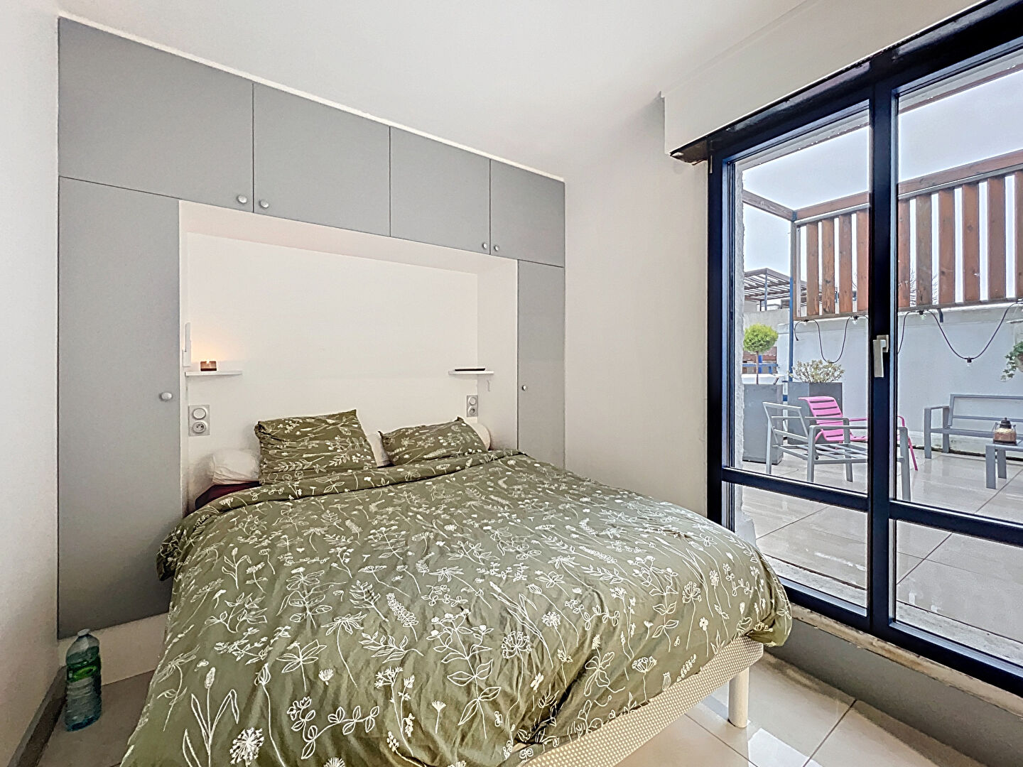 Au premier et dernier étage, l'appartement se compose comme suit : une entrée, un salon séjour donnant accès à une terrasse sans vis à vis de 22 m², une cuisine, une salle d'eau, un W.C, et deux chambres. Une cave ainsi qu'une place de parking complètent le bien.