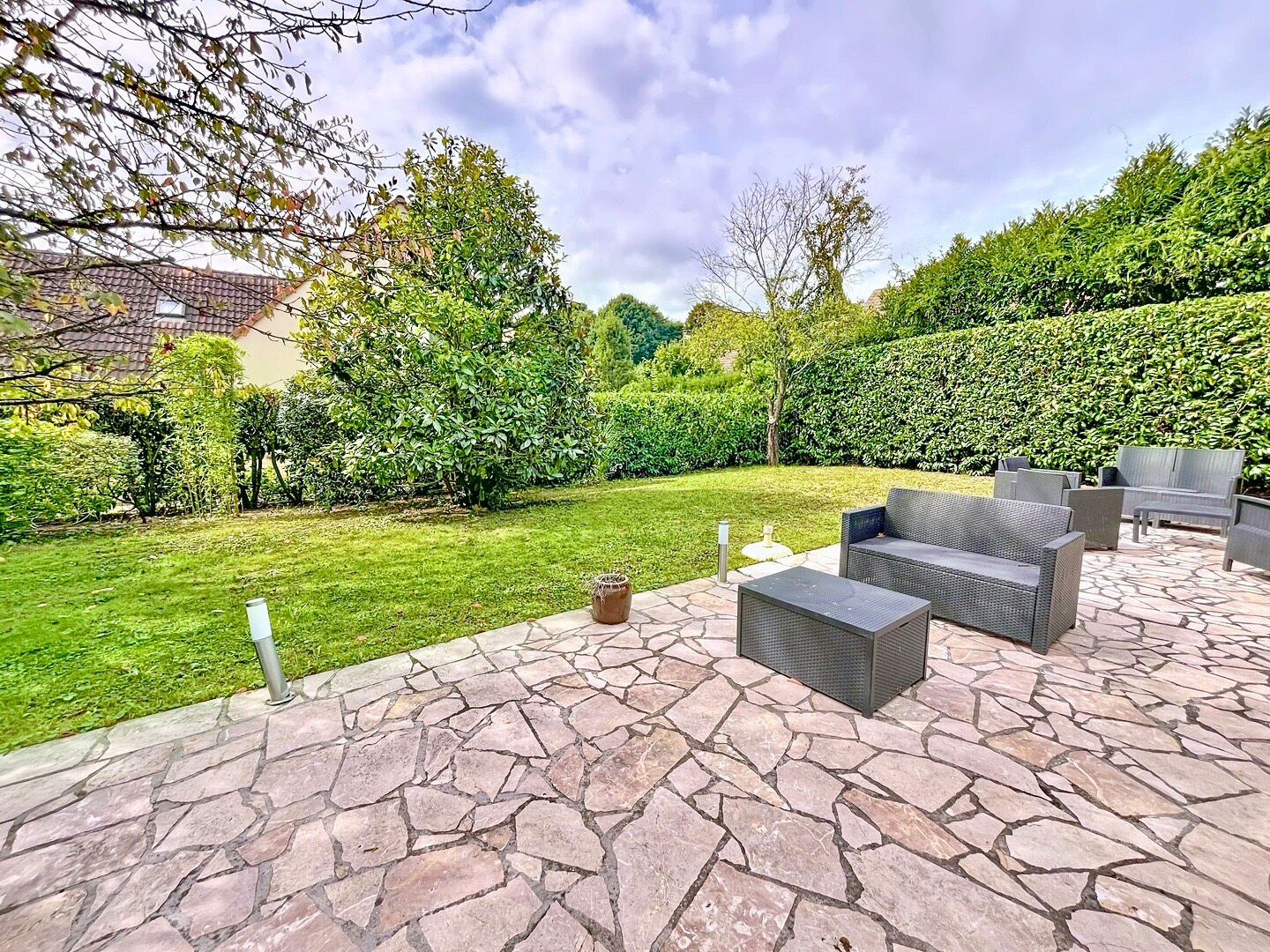 Vous trouverez au rez-de-chaussée : une grande entrée cathédrale , une cuisine entièrement équipée ouvrant sur jardin , une belle pièce de vie de plus de 45 m² donnant accès direct au jardin, WC indépendant.