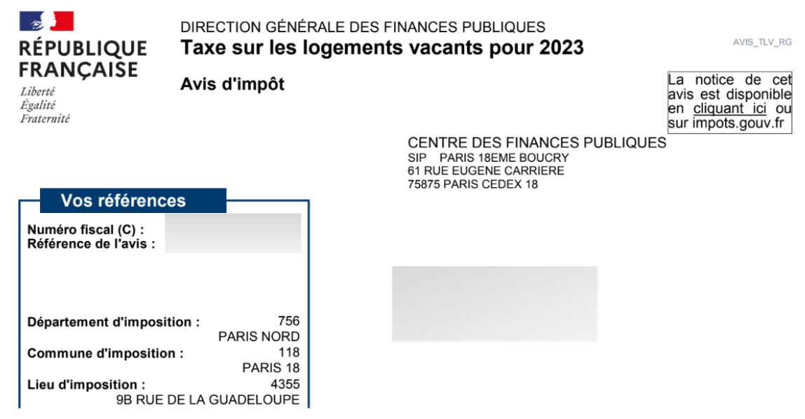 La référence de l’avis se trouve en haut à gauche de votre taxe sur les logements vacants.